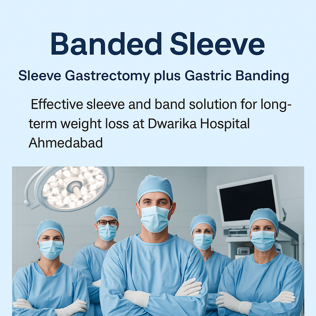 Banded Sleeve Gastrectomy (Sleeve-Plus) is an enhanced version of traditional Sleeve Gastrectomy designed to provide better long-term appetite control, slower pouch dilation and more sustained weight loss results. At Dwarika Hospital Ahmedabad, this procedure is performed by Dr. Avinash Tank, a leading bariatric, metabolic and gastrointestinal surgeon. (Verify credentials with clinician.)